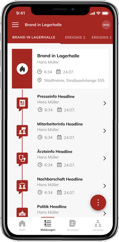 Über diesen Screen erhalten Sie einen Überblick über alle aktuellen Ereignisse